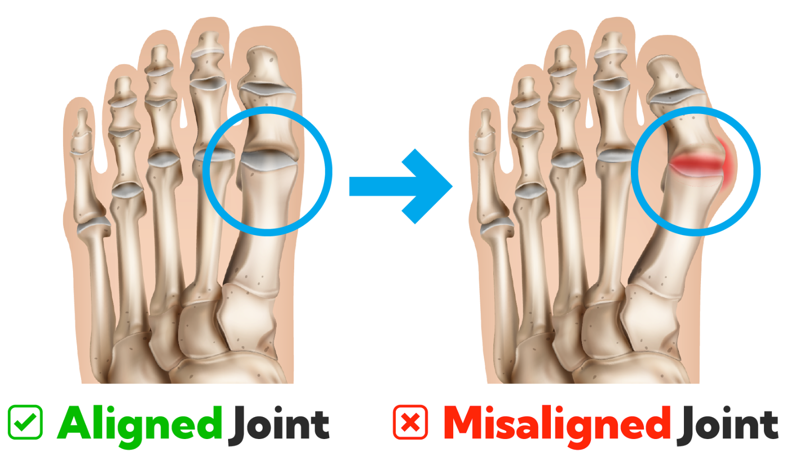 Think about it: when your big toe leans in toward the others, it pushes the joint outward, creating that painful lump.