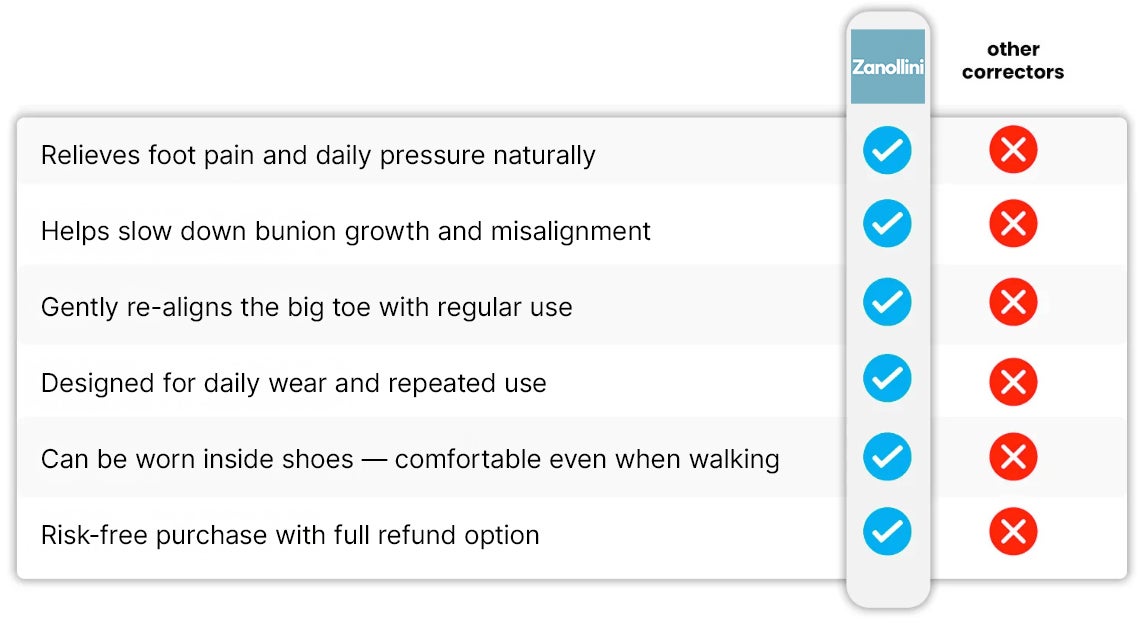 Compared to generic correctors, Zanollini™ OrthoAligner gives your toe a more intense realignment — you’ll feel it working, and you’ll see real results.